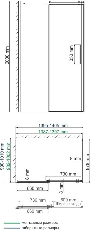 Душевое ограждение WasserKraft Alme 15R37 1400х1000х2000 мм. Профиль - хром, стекло - прозрачное, 8 мм. Размеры с диапазоном регулировок: (1395-1405)x(990-1010) мм. Ширина входа: 609 мм. Душевой поддон приобретается отдельно. Дверь 140 см, душевая стенка 100 см.