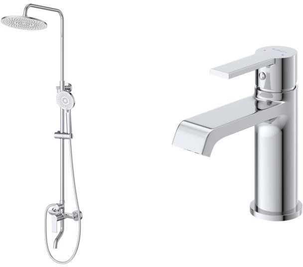 Душевой комплект BelBagno: Душевая стойка AURORA-VSCM-CRM + смеситель для раковины AURORA-LVM-CRM-W0 (Новинка 2025)