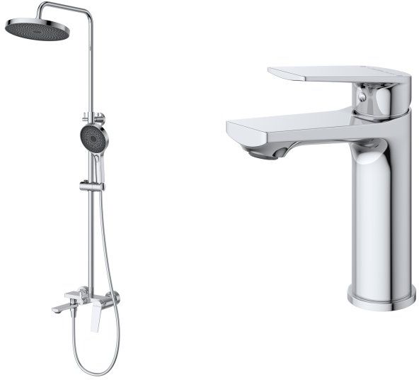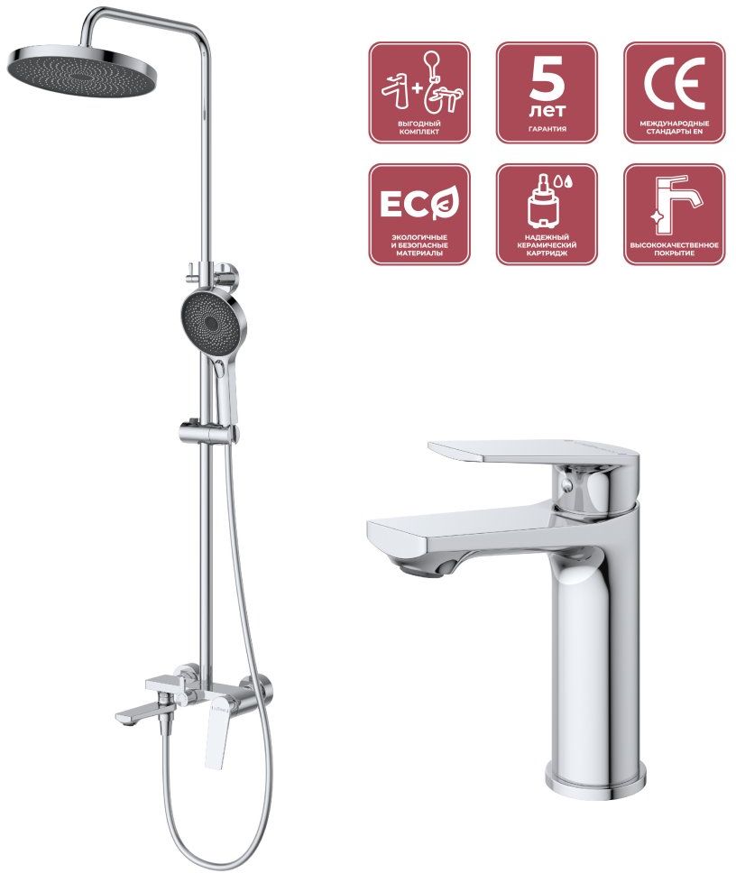 Душевой комплект Cezares: Душевая стойка COMFORT-CVD-01 + смеситель для раковины COMFORT-LS-01-W0 (Новинка 2025)