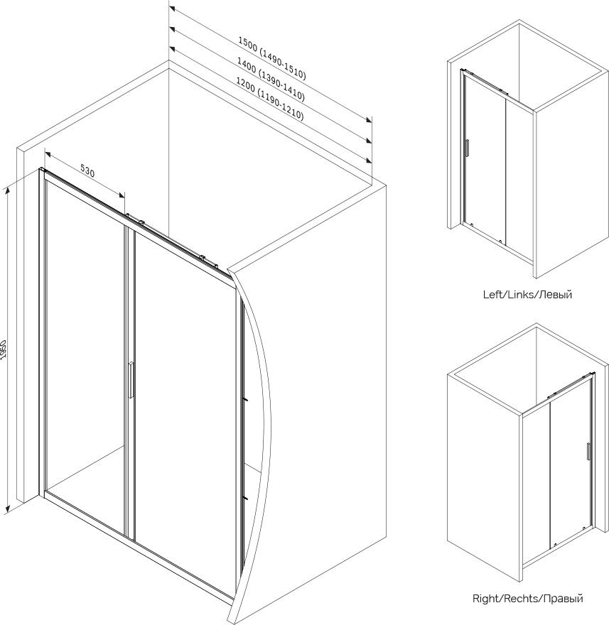 Дверь душевая Am.Pm Gem Solo 140 см W90G-140-1-195MM, профиль хром, стекло матовое, вход 530 мм.