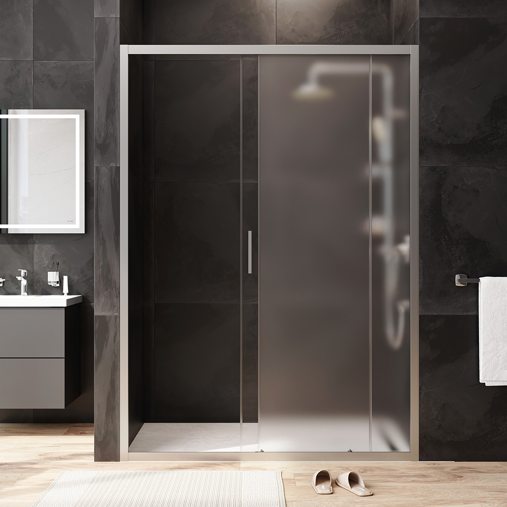 Душевая дверь отличается практичностью и функциональностью. Изделие произведено из ударопрочного закаленного стекла которое надежно фиксируется в нержавеющий алюминиевый профиль при помощи системы скрытых креплений. Ширина конструкции может быть увеличена путем регулирования каркаса на 20 мм что решает проблему неровных стен. Безупречную и плавную работу двери обеспечивают двойные металлические ролики на металлоподшипниках. Конструкция максимально герметична и предотвращает попадание воды на пол ванной комнаты.