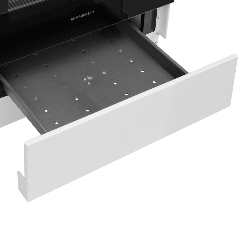 Ящик, расположенный под духовкой, легко выдвигается и является отличным местом для хранения посуды, кастрюль и сковородок.