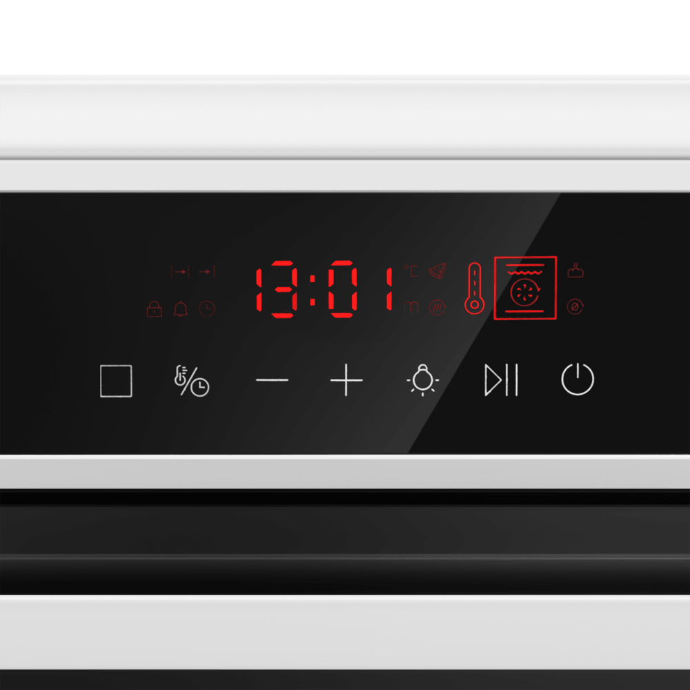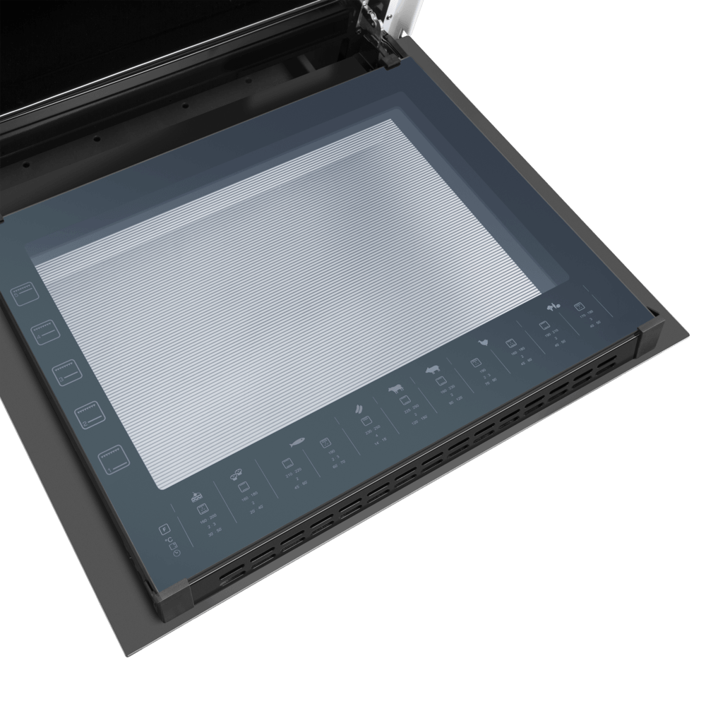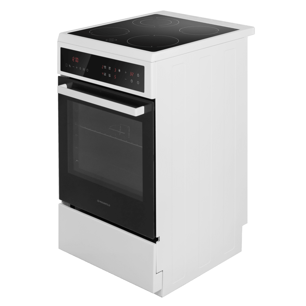 Полноразмерная электрическая плита с сенсорным управлением, варочная поверхность - стеклокерамическая. Техническое оснащение также на уровне - конфорки рабочего стола и духовой шкаф управляются сенсорами, в комплектацию входит многофункциональный таймер. Духовой шкаф оснащен конвекцией и грилем. Благодаря яркому внутреннему освещению виден весь объем духовки, нет необходимости открывать дверцу для контроля готовности блюда. Комфортная в эксплуатации, для удобства ухода за плитой, направляющие для противней - съемные и легко чистятся. Предусмотрен и ящик для хранения кухонной посуды. Модель по праву заслуживает место на Вашей кухне.
