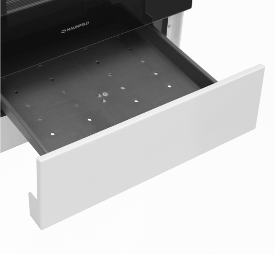 Ящик, расположенный внизу плиты, легко выдвигается и является удобным местом для хранения посуды, кастрюль и сковородок. Это освобождает дополнительное место и позволяет лучше использовать пространство на вашей кухне.