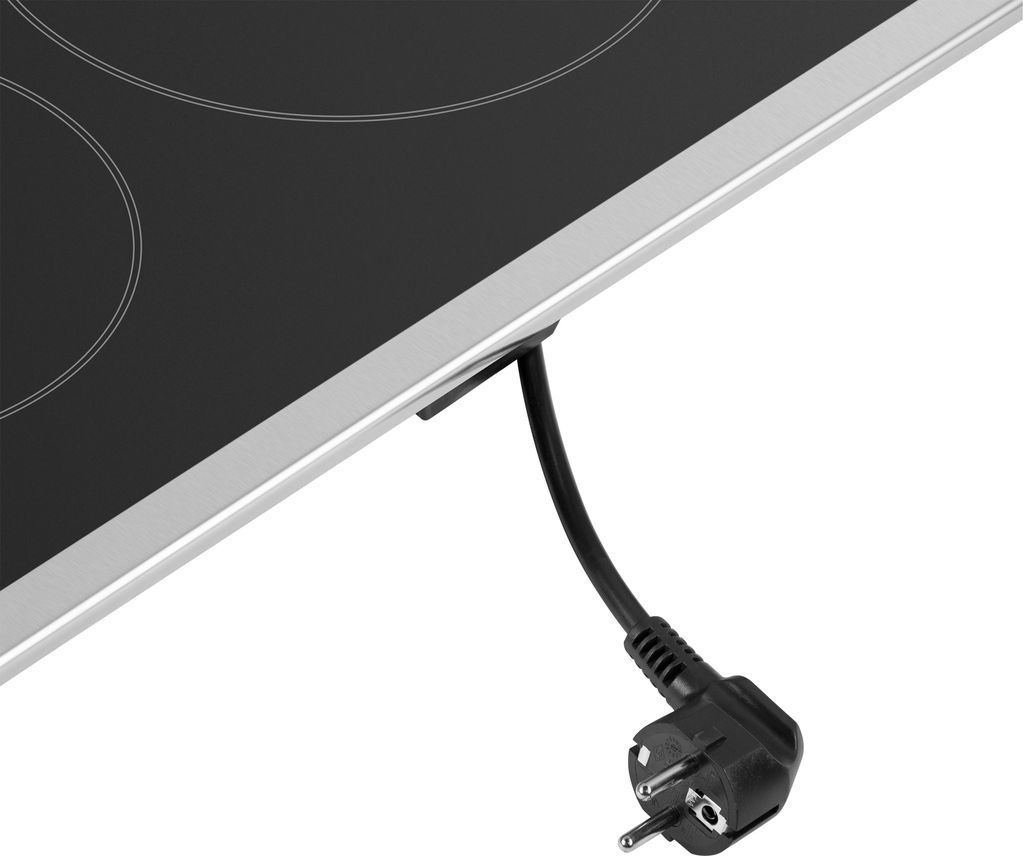 - Компактная электрическая встраиваемая варочная панель шириной 30 см выполнена из ударопрочной стеклокерамики черного цвета. Благодаря идеальной гладкости и высокой износостойкости она легко очищается.