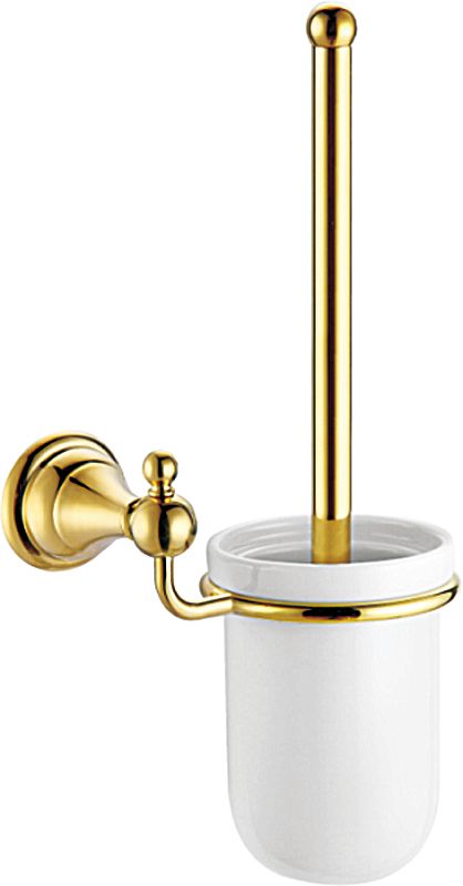 Ёршик для унитаза Azario Elvia AZ-91113G с настенным держателем, материал нержавеющая сталь/цинк/керамика, цвет золото.