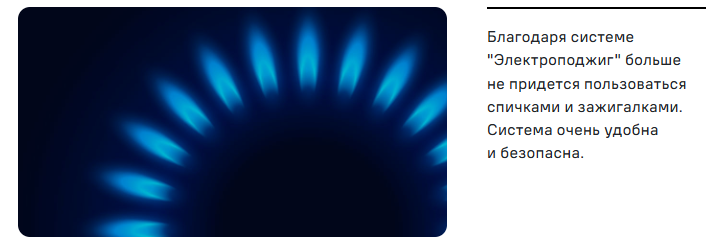 Функция электроподжиг конфорок способно значительно сэкономит ваше время и избавит от необходимости каждый раз при включении пользоваться спичками.