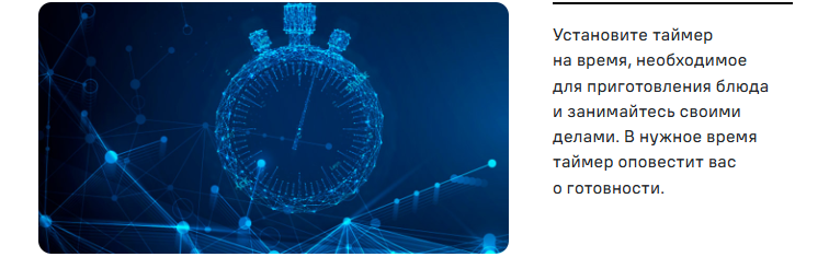 Данная модель оснащена звуковым сигналом. Как только истекает заданное таймером время, раздается звуковой сигнал, оповещающий вас о готовности блюда.