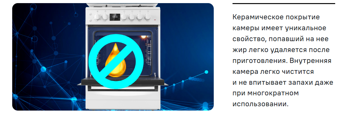 Одной из важнейших функций газовой плиты является система газ-контроль. Данная система автоматически прекратит подачу газа если пламя внезапно потухнет.