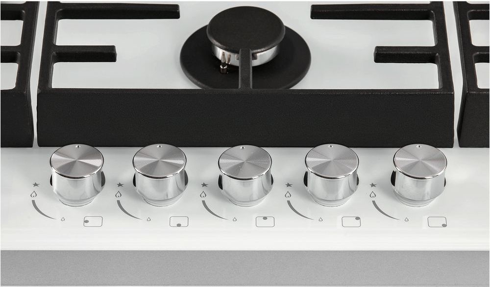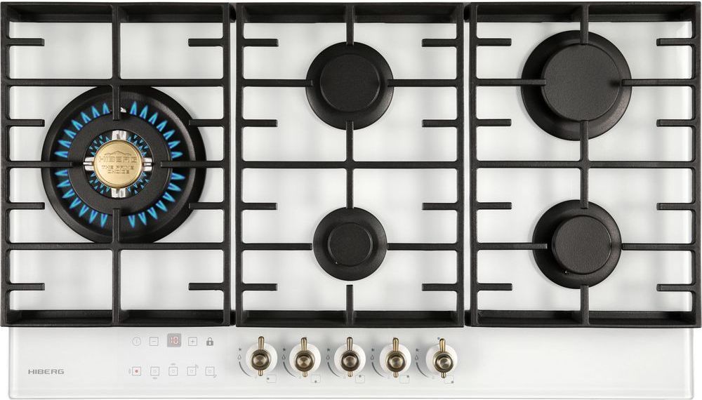 - Встраиваемая газовая варочная поверхность HIBERG VM 9155 W из закаленного стекла в белом цвете, оснащена 5 конфорками и функциями: автоматический «электророзжиг», «газ-контроль» и сенсорный таймер отключения. В комплект варочной поверхности входит дополнительный набор ручек регуляторов в ретро-стиле.