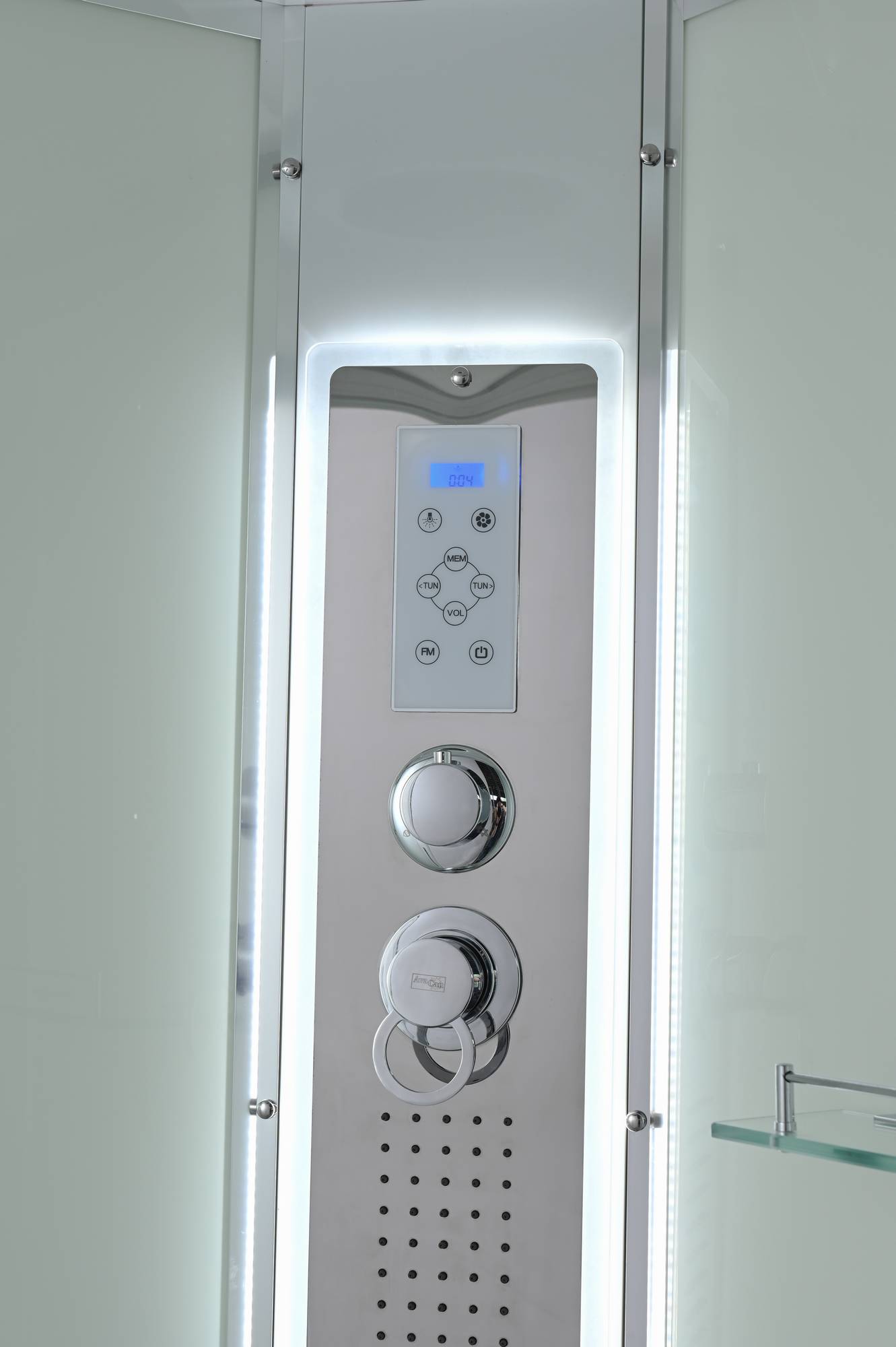 Стильная душевая кабина AvaCan сочетает в себе высокую функциональность, практичность и надежность. При изготовлении применяется безопасное закаленное стекло, надежно фиксируемое алюминиевым профилем.Профиль сделан из алюминия повышенной прочности. Сборка без силикона (увеличивает срок службы, защищает от протечек), внутренняя сборка (облегчает установку и ревизию; позволяет установить в ограниченном пространстве и обойтись без демонтажа других сантехнических приборов), смеситель резьбовой (без хомутов). Съемный экран поддона (позволяет осуществлять подключение и ревизию сифона).Двойные металлические ролики дверей (распределение нагрузки на два ролика, увеличивают срок службы). Душевая штанга(позволяет регулировать по высоте ручную лейку), ручная арома-лейка с витамином С (картридж в комплекте,есть возможность замены или удаления картриджа), полочки(из стекла, с ограничителем), сифон с гидрозатвором, сенсорный пульт управления с функциями: блютуз, LED подсветка, радио, вытяжка, гидромассаж спины, тропический (верхний) душ.