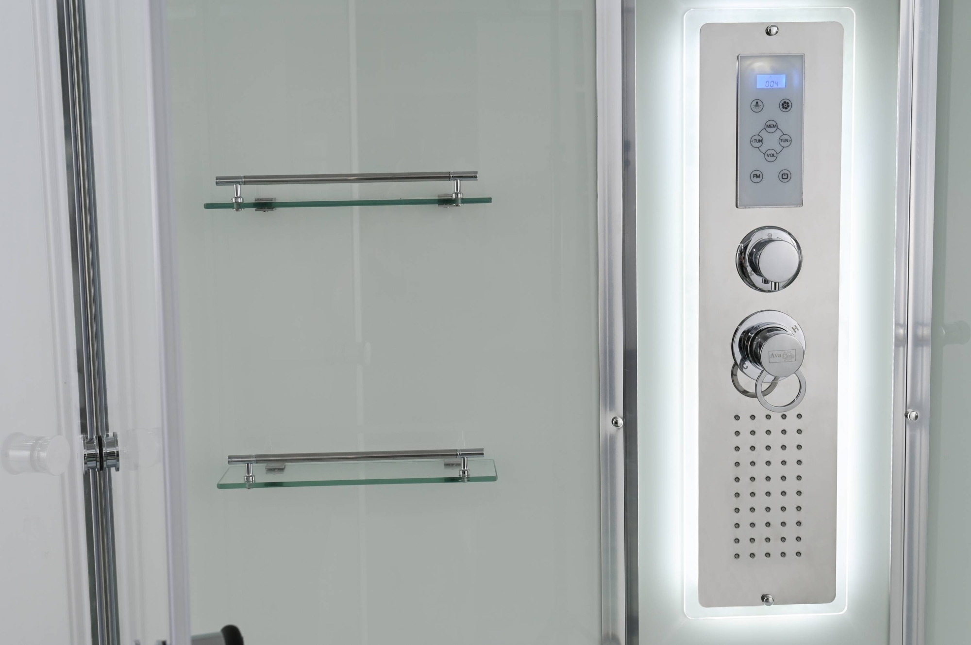 Стильная душевая кабина AvaCan сочетает в себе высокую функциональность, практичность и надежность. При изготовлении применяется безопасное закаленное стекло, надежно фиксируемое алюминиевым профилем.Профиль сделан из алюминия повышенной прочности. Сборка без силикона (увеличивает срок службы, защищает от протечек), внутренняя сборка (облегчает установку и ревизию; позволяет установить в ограниченном пространстве и обойтись без демонтажа других сантехнических приборов), смеситель резьбовой (без хомутов). Съемный экран поддона (позволяет осуществлять подключение и ревизию сифона).Двойные металлические ролики дверей (распределение нагрузки на два ролика, увеличивают срок службы). Душевая штанга(позволяет регулировать по высоте ручную лейку), ручная арома-лейка с витамином С (картридж в комплекте,есть возможность замены или удаления картриджа), полочки(из стекла, с ограничителем), сифон с гидрозатвором, сенсорный пульт управления с функциями: блютуз, LED подсветка, радио, вытяжка, гидромассаж спины, тропический (верхний) душ.