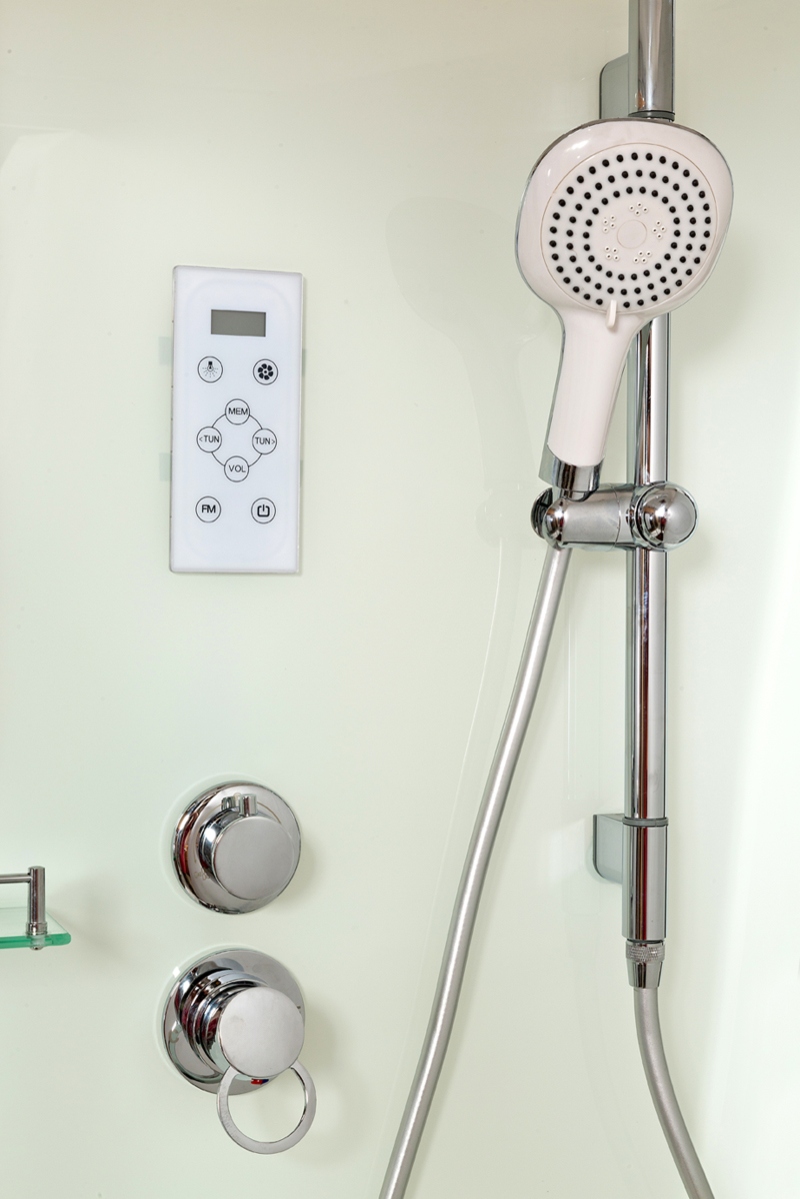 Стильная душевая кабина с внутренней сборкой AvaCan V8015 сочетает в себе высокую функциональность, практичность и надежность. Для изготовления применяют безопасное закаленное стекло толщиной 6 мм, надежно фиксируемое алюминиевым профилем. Цвет профиля хром. В комплекте зеркало, сенсорный пульт управления, передний съемный экран, душевой гарнитур, смеситель, тропический (верхний) душ, переключатель режимов, вентиляция, полочки, гидромассажные форсунки, откидное сиденье, тропический (верхний) душ, вентиляция, радио, деревянная вставка в поддон.