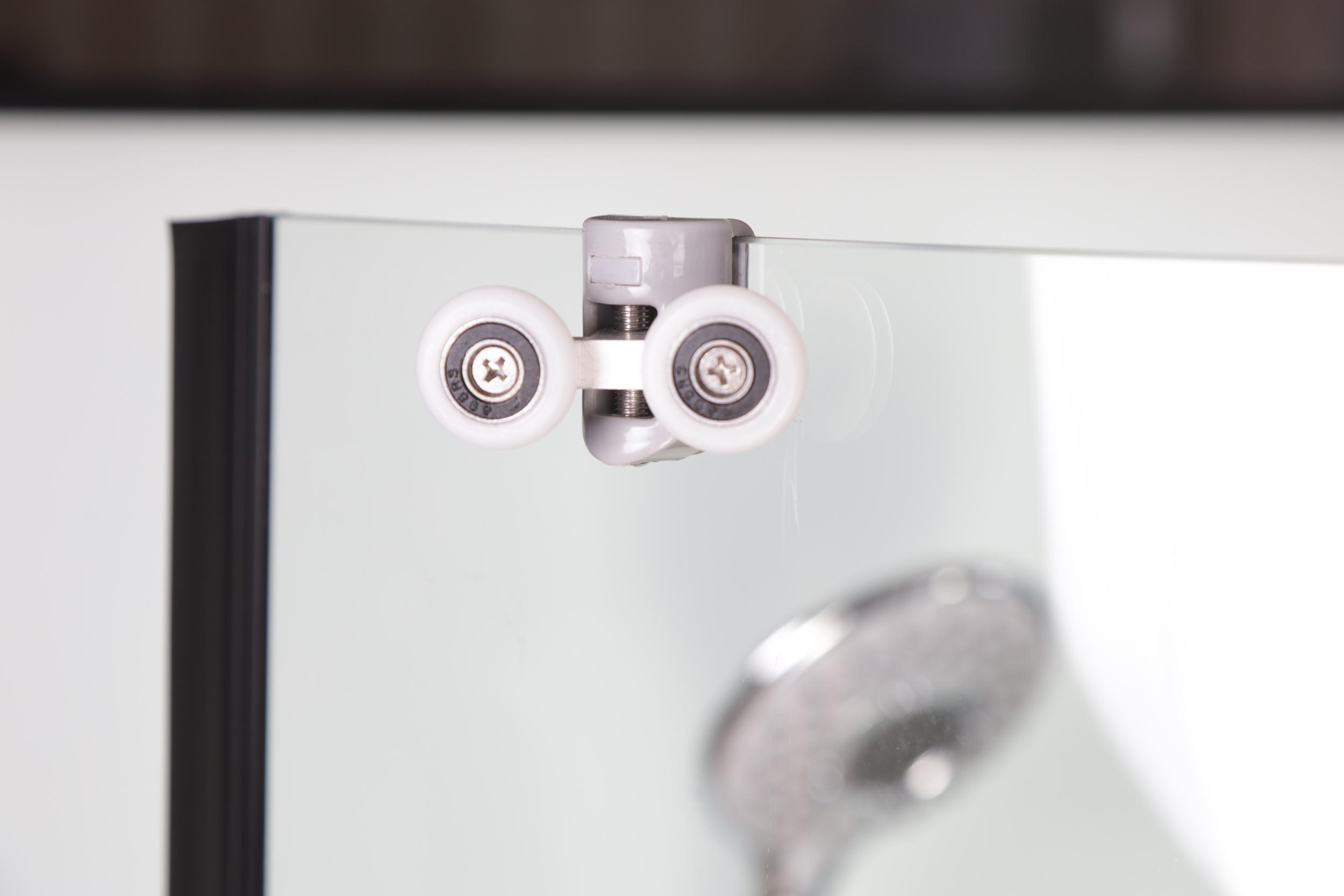 - Профиль выполнен в черном варианте, стенки и двери кабины - белые матовые.