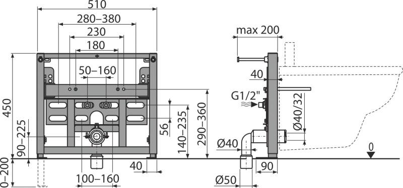 Характеристики инсталляция для биде AlcaPlast (A105/450)