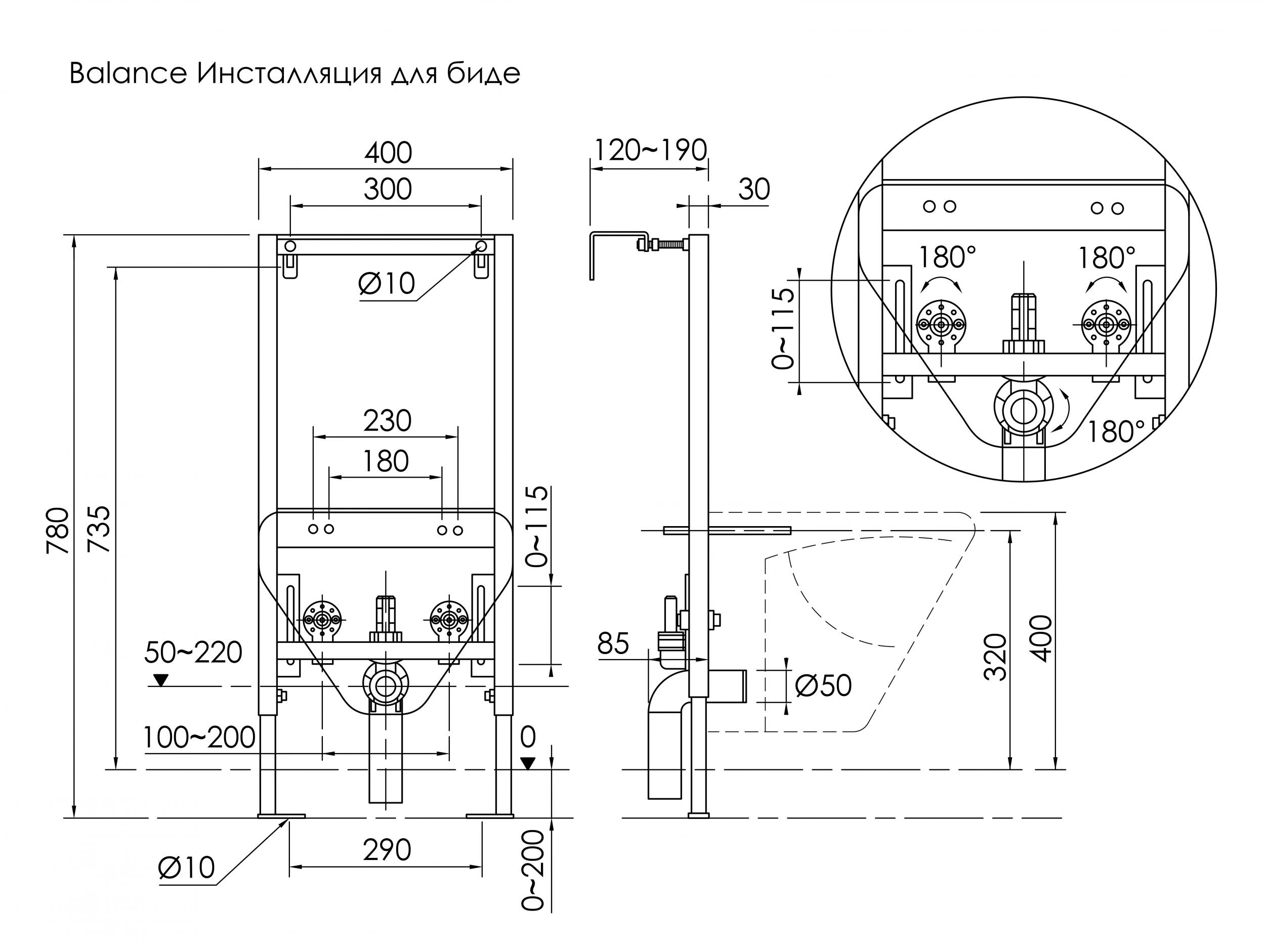 • Широкий диапазон регулировки позволяет установить любую форму чаши подвесного биде.