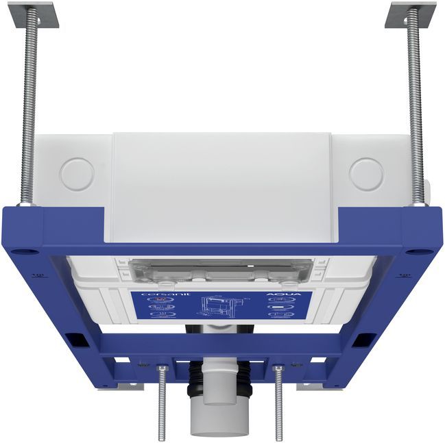 - Конструкция рамы инсталляции Aqua позволяет крепить ее в разные проемы. Шпильки можно установить посредине рамы — их положение в горизонтальной и в вертикальной плоскостях регулируется благодаря специальным отверстиям. Все рекомендованные комбинации и сочетания креплений указаны в инструкции. Каждый вариант проверен под нагрузкой 400 кг.