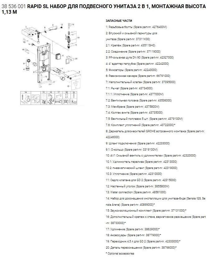 Описание для подвесного унитаза Grohe 38536001+38732000