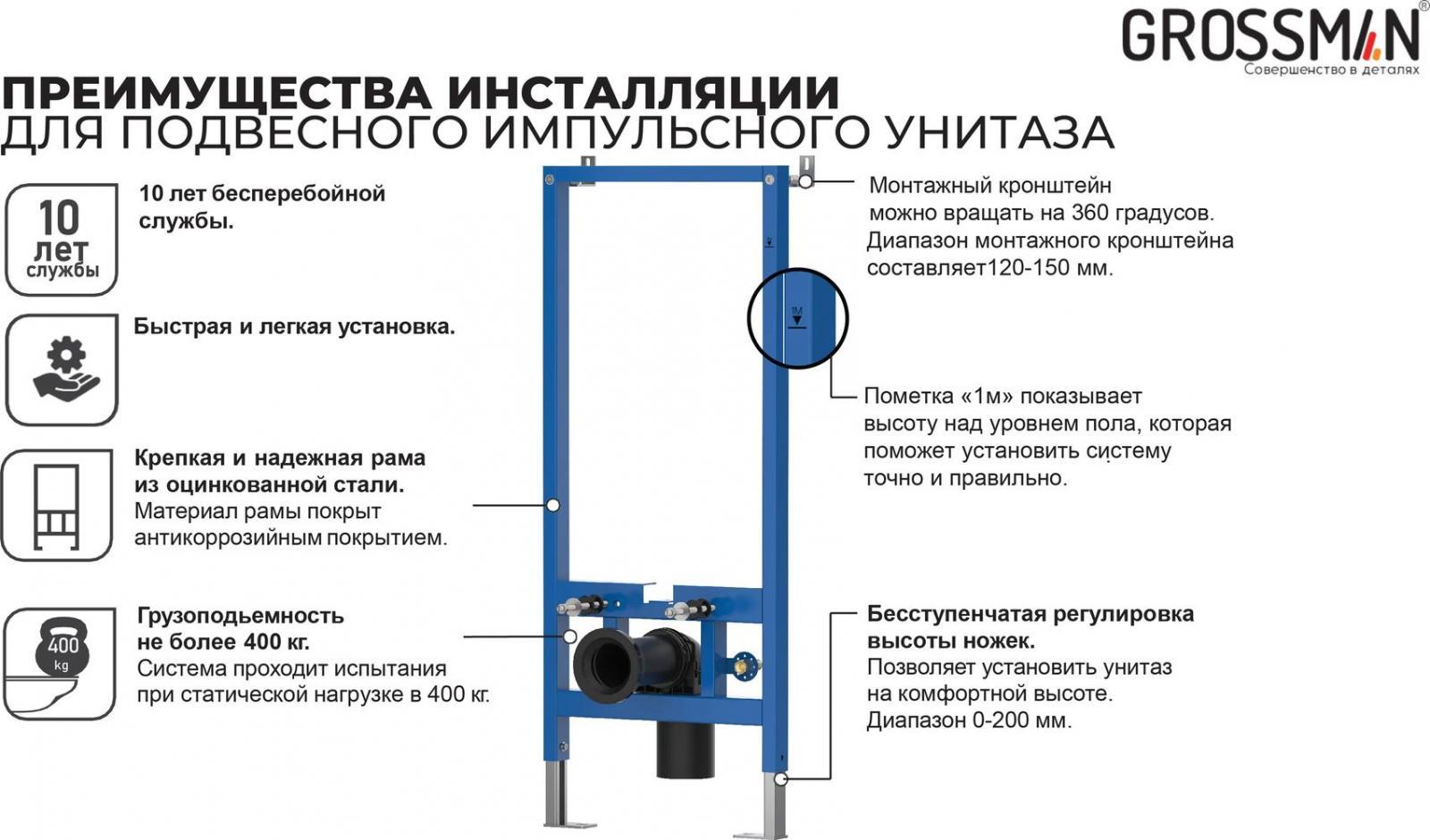 Инсталляция для подвесных импульсных унитазов Grossman 901.K31.01.000.