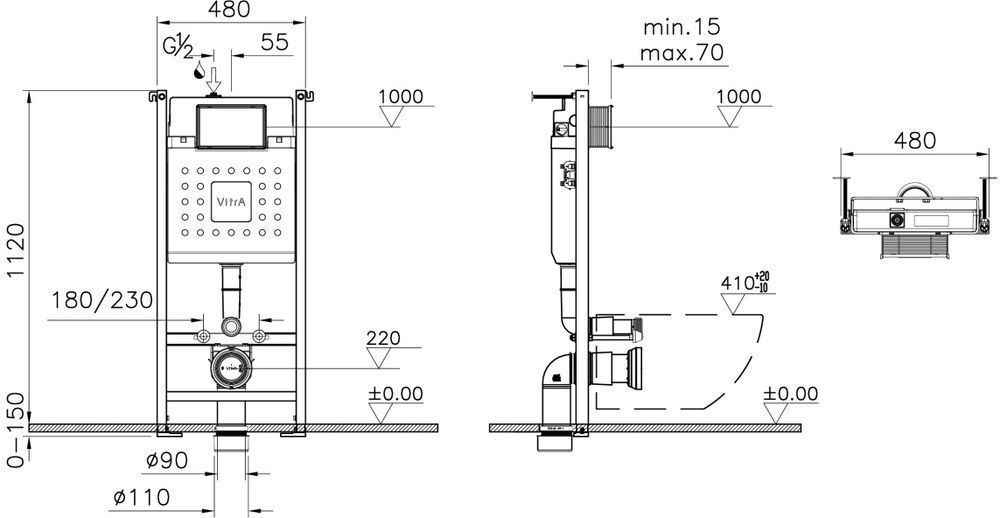 Инсталляция для унитаза Vitra V-Fix Core 800-1874, кнопка смыва чёрная матовая.