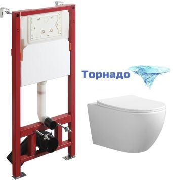 Инсталляция с подвесным безободковым унитазом AN Navi сиденье микролифт, крепление (система смыва Торнадо)