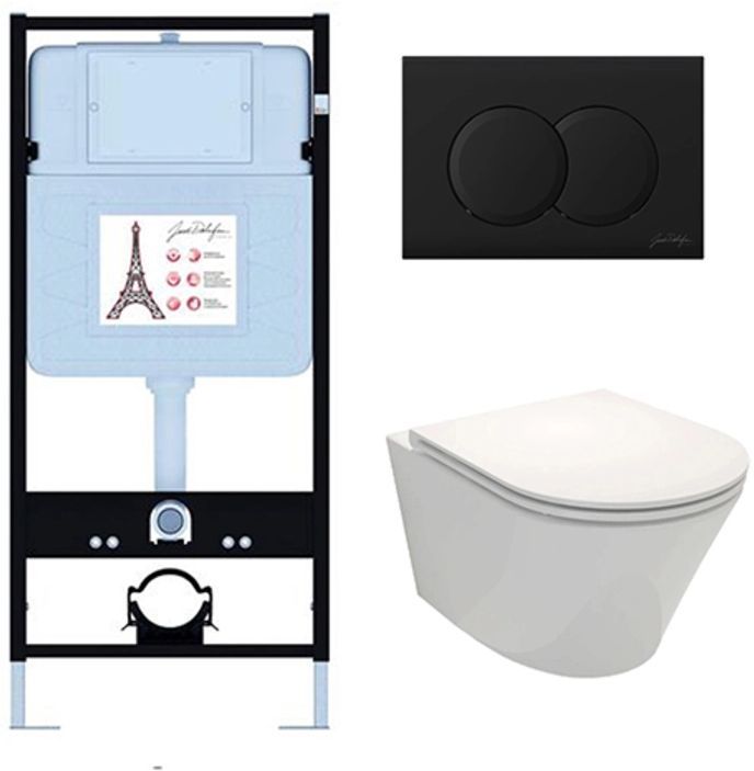 Инсталляция с подвесным безободковым унитазом Jacob Delafon Rodin+ E21750RU-BL, сиденье с тонкой крышкой микролифт