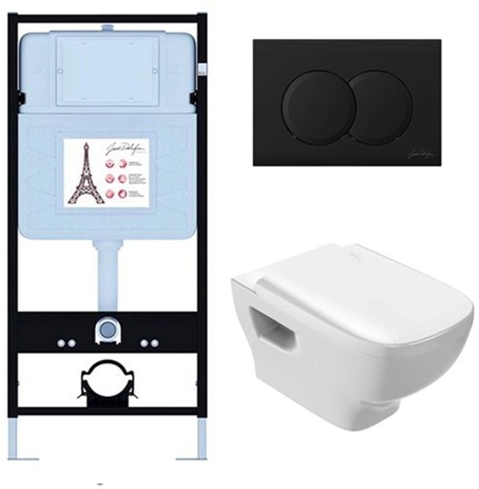 Инсталляция с подвесным безободковым унитазом Jacob Delafon Struktura EDE103-BL, сиденье с крышкой микролифт