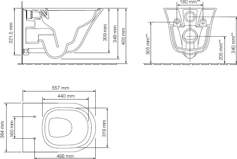 • Экономия воды: может работать при низком потреблении воды 2,6 /4 л.