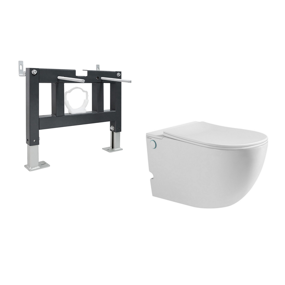 Инсталляция с подвесным унитазом комплект: Abber AC0101P с подвесным импульсным унитазом Bequem AC1105P с крышкой микролифт, цвет белый.