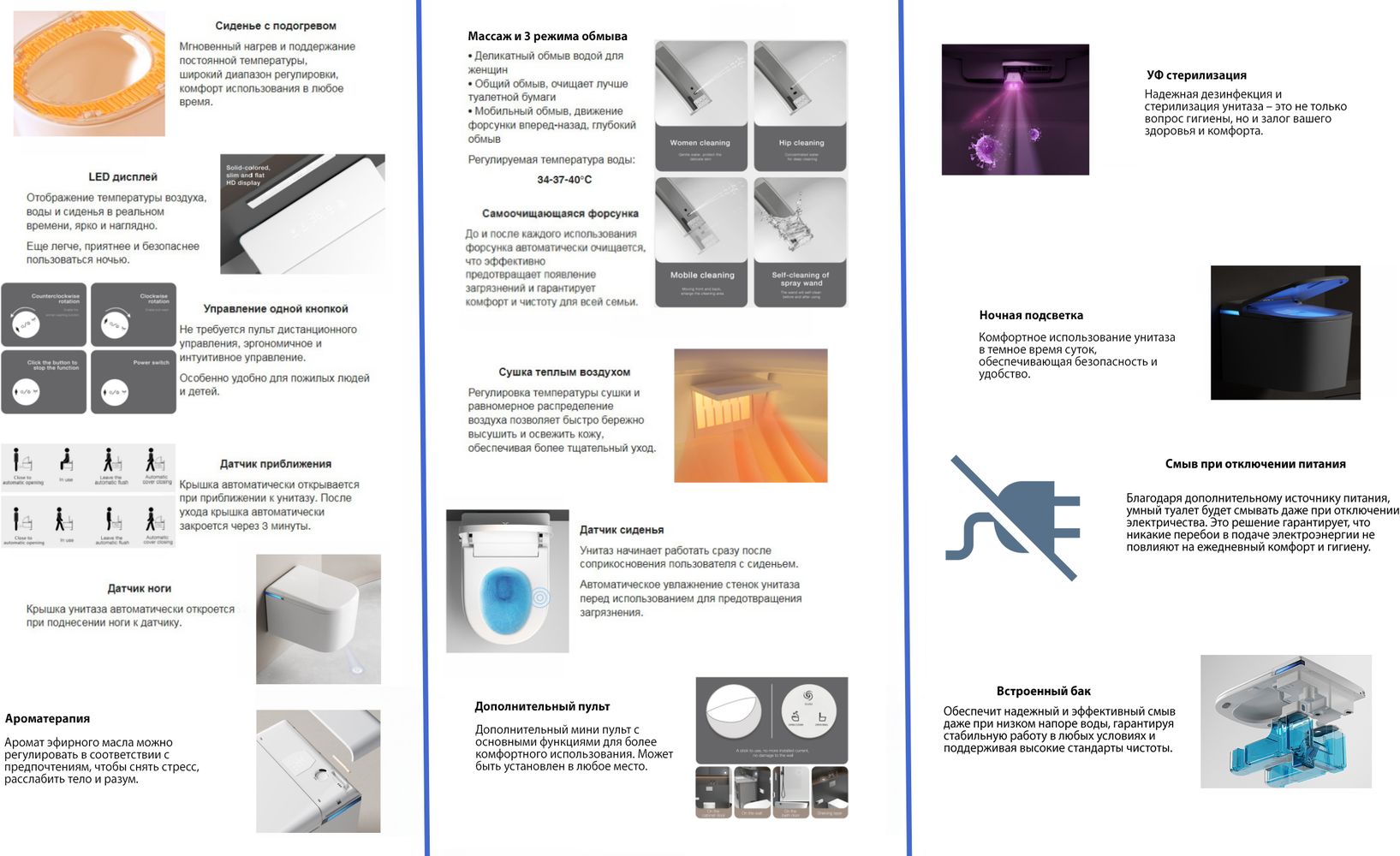 - режимы обмыва: общий, женский, мобильный, массаж