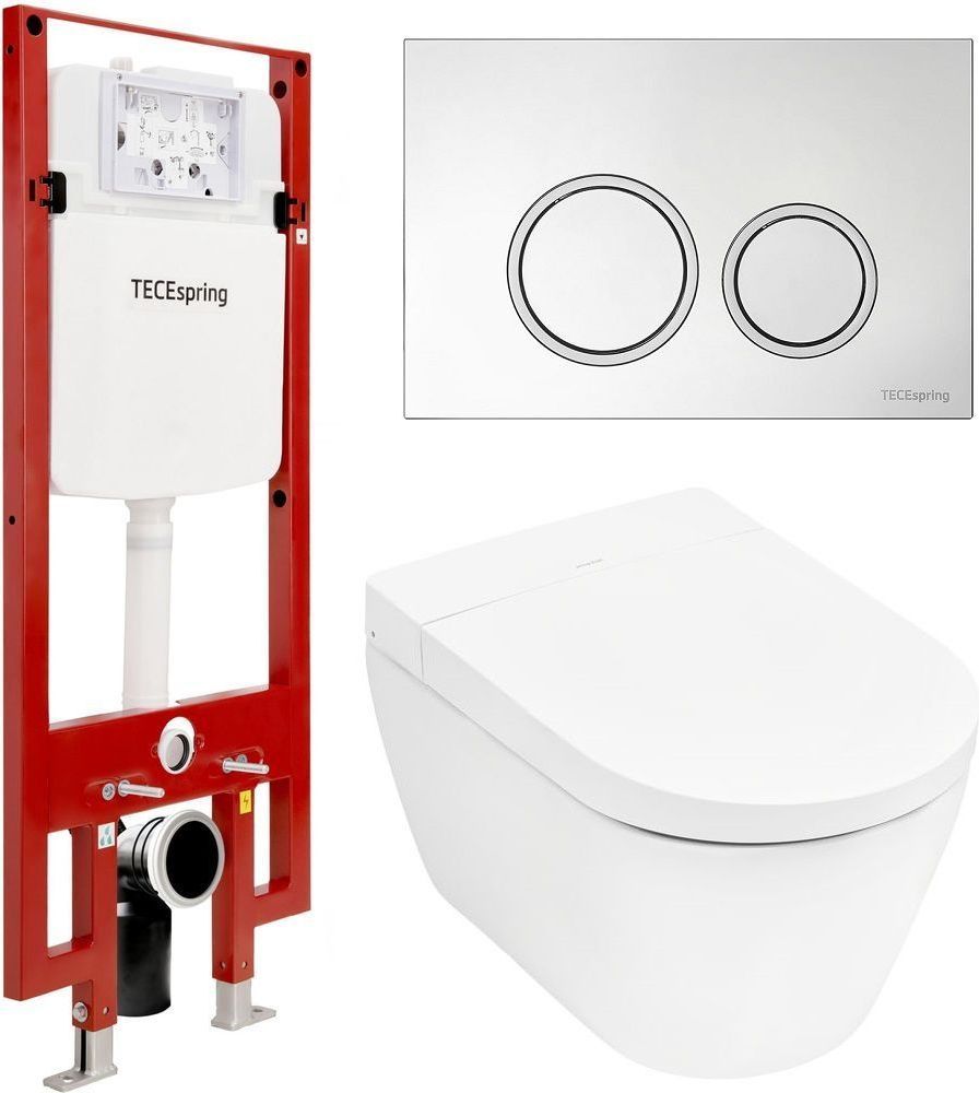 Инсталляция с подвесным унитазом-биде комплект: Tece Spring S955799 сиденье микролифт, кнопка смыва хром.