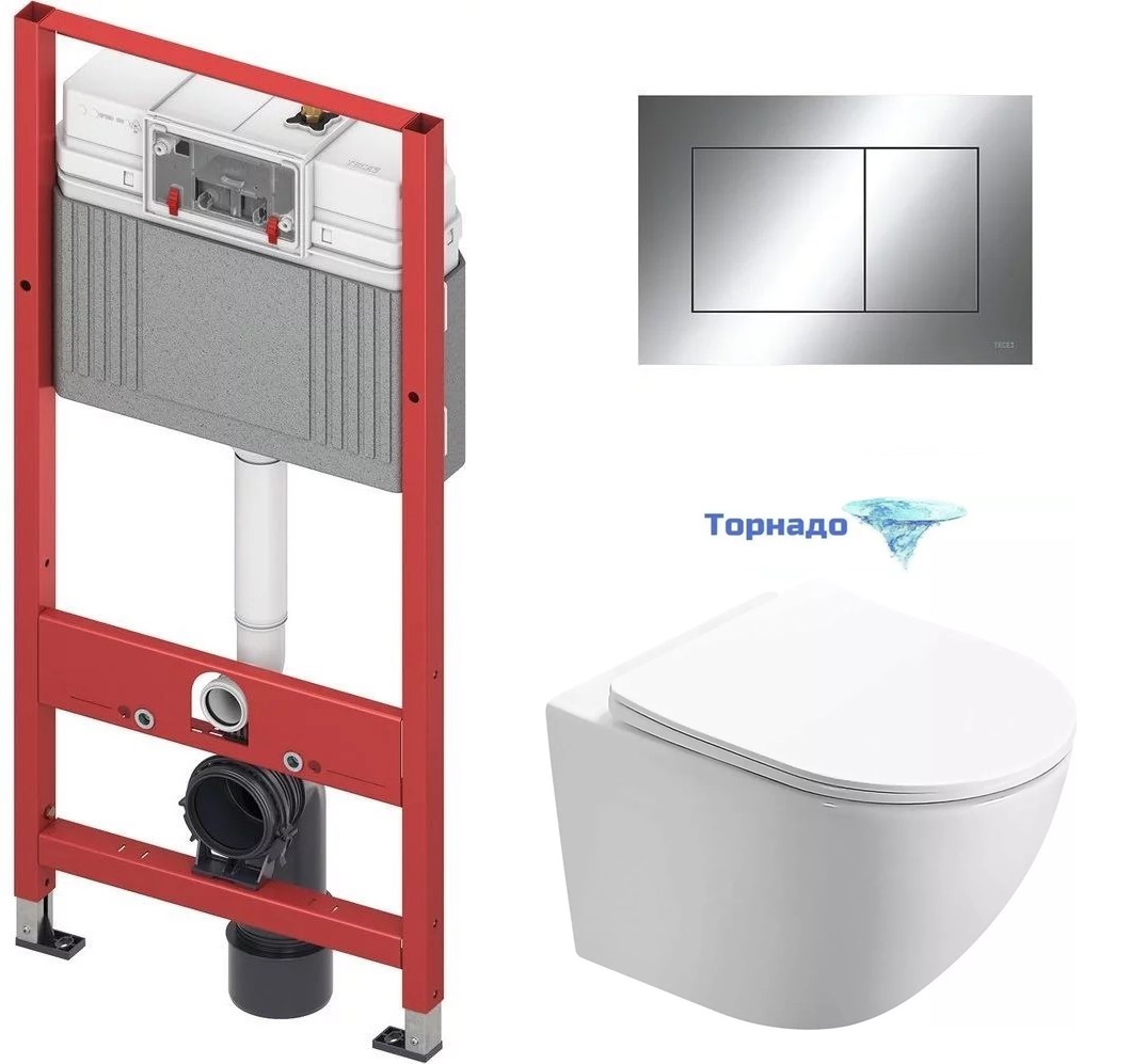 Инсталляция с подвесным унитазом комплект: TECEbase 2.0 9400412 с подвесным безободковым унитазом Azario Trevi AZ-0093UQ3 сиденье микролифт, крепление, кнопка смыва хром глянцевый (система смыва Торнадо).