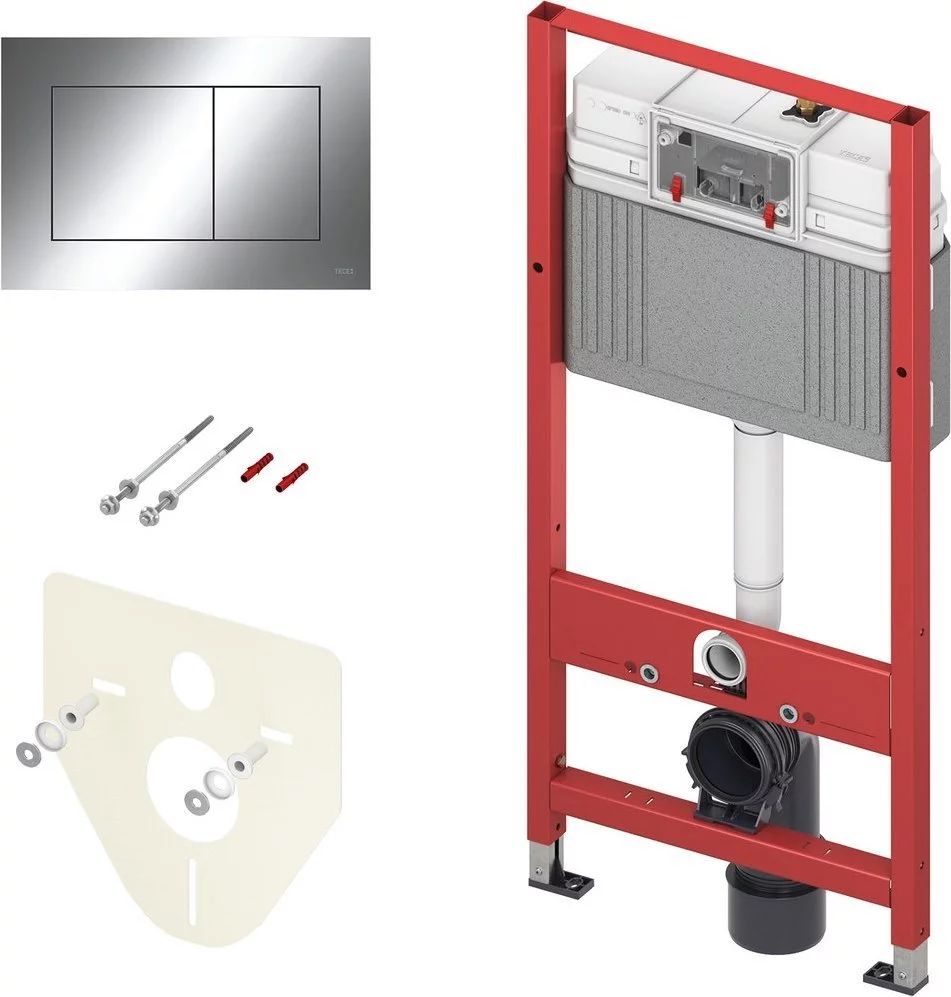 Инсталляция с подвесным унитазом комплект: TECEbase 2.0 9400412 с подвесным безободковым унитазом BelBagno Uno BB3105CHR/SC сиденье микролифт, крепление, кнопка смыва хром глянцевый.