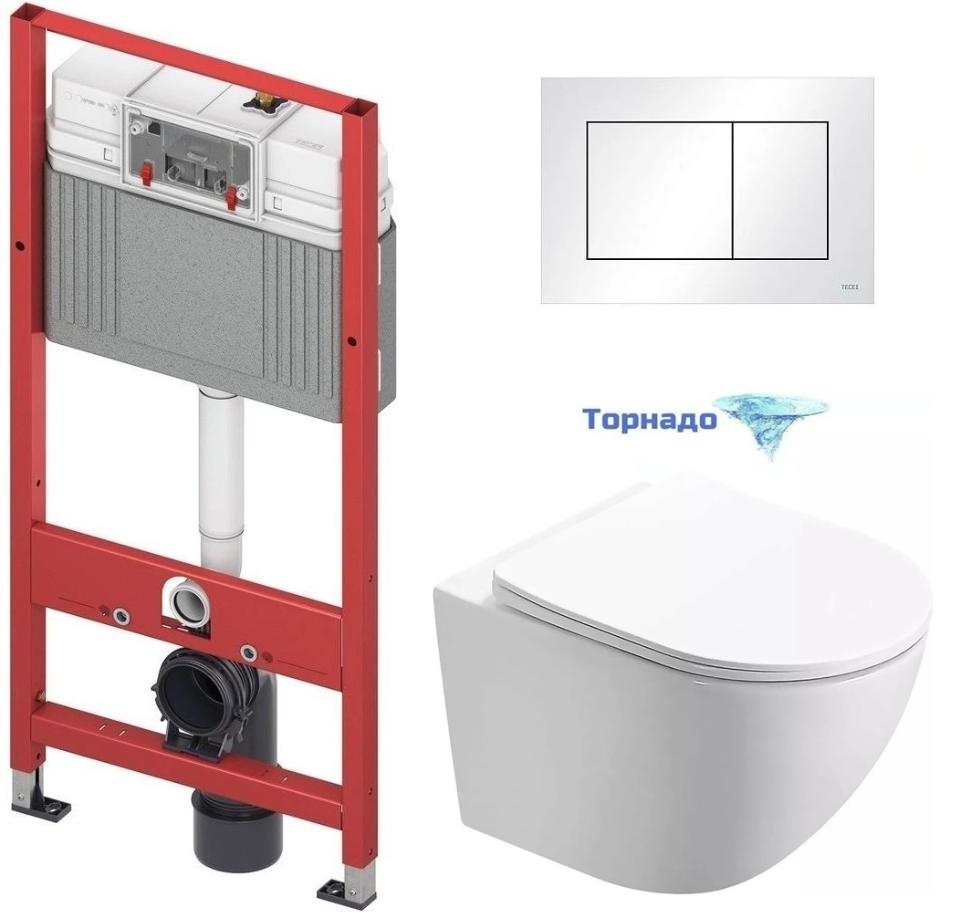 Инсталляция с подвесным унитазом комплект: TECEbase 2.0 9400413 с подвесным безободковым унитазом Azario Trevi AZ-0093UQ3 сиденье микролифт, крепление, кнопка смыва белая (система смыва Торнадо)
