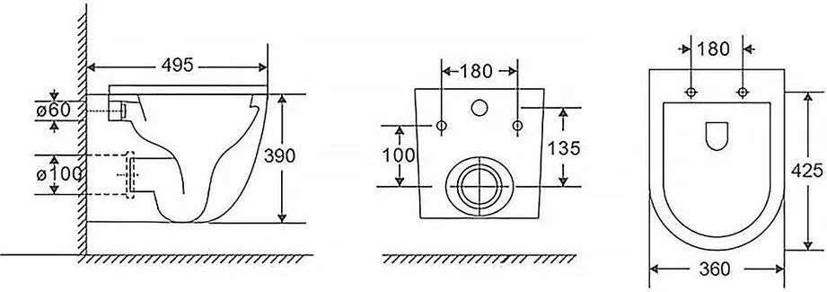 • Комплект крепежных элементов для установки унитаза (установочное расстояние 180 мм)