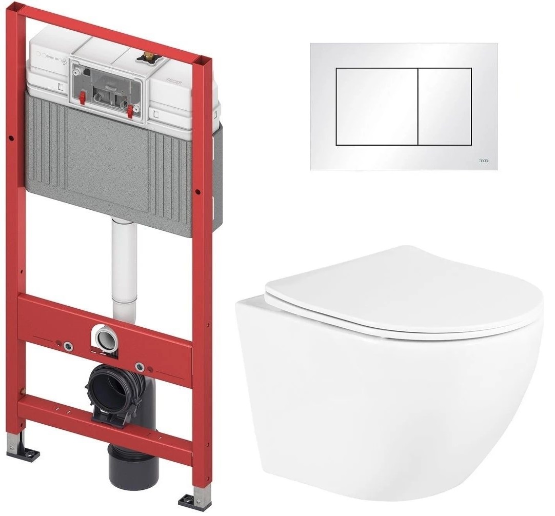 Инсталляция с подвесным унитазом комплект: TECEbase 2.0 9400413 с подвесным безободковым унитазом BelBagno Uno BB3105CHR/SC сиденье микролифт, крепление, кнопка смыва белая.