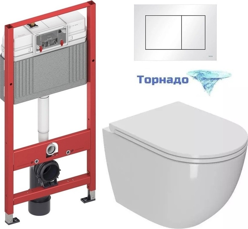 Инсталляция с подвесным унитазом комплект: TECEbase 2.0 9400413 с подвесным безободковым унитазом Sintesi Evi SIN-TS-EVI-152 сиденье микролифт, крепление, кнопка смыва белая (система смыва Торнадо) - фото