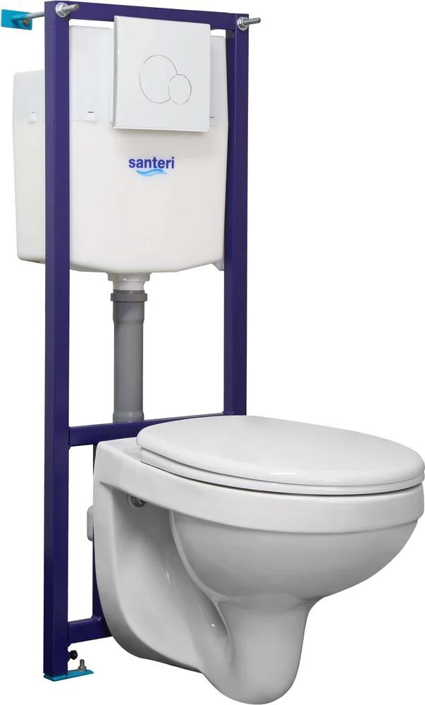 Инсталляция с подвесным унитазом Santeri Альфа комфорт 1.3816.4.S00.00B.2 + сиденье с крышкой микролифт, кнопка смыва белая.