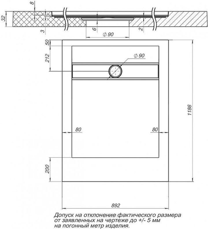 • Размеры (ШхДхВ): 120х90х3 см Глубина поддона: 0,8 см