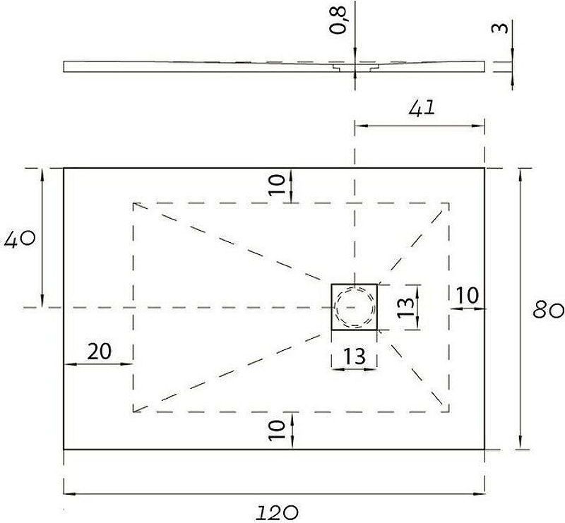 - Размеры (ШхДхВ): 120х80х3 см Глубина поддона: 0,8 см