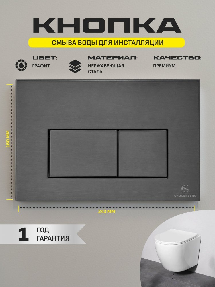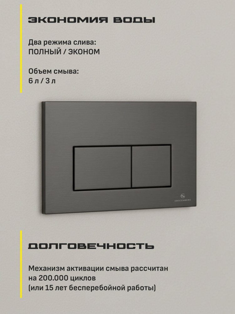 - Выбирая кнопку смыва GROCENBERG, вы выбираете качество и стиль. Не упустите возможность сделать свою ванную комнату ещё более привлекательной!