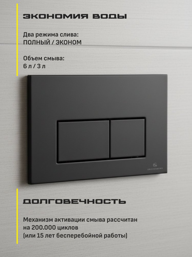 - Кнопка смыва для унитаза GROCENBERG KM3070BL в чёрном матовом цвете — это не просто кнопка, это заявление вашего унитаза о стиле и надёжности!