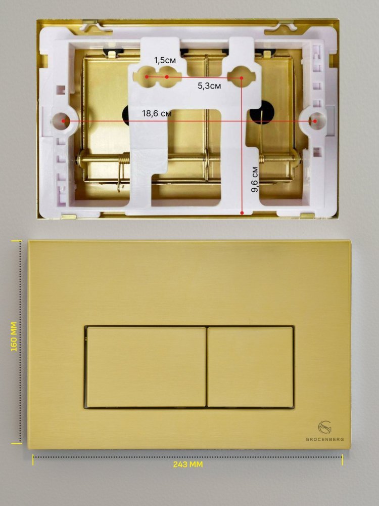 - Кнопка смыва для унитаза GROCENBERG KM3070MG — это не просто элемент сантехники, это настоящее украшение вашей ванной комнаты! Матовое золото придаёт изысканность и роскошь, делая интерьер стильным и элегантным.