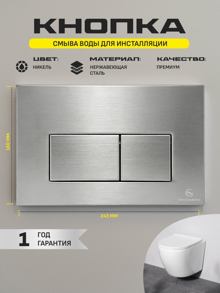 - Выбирая кнопку смыва GROCENBERG, вы получаете качественный товар от надёжного производителя. Не упустите возможность обновить свой санузел и сделать его ещё более комфортным и стильным!