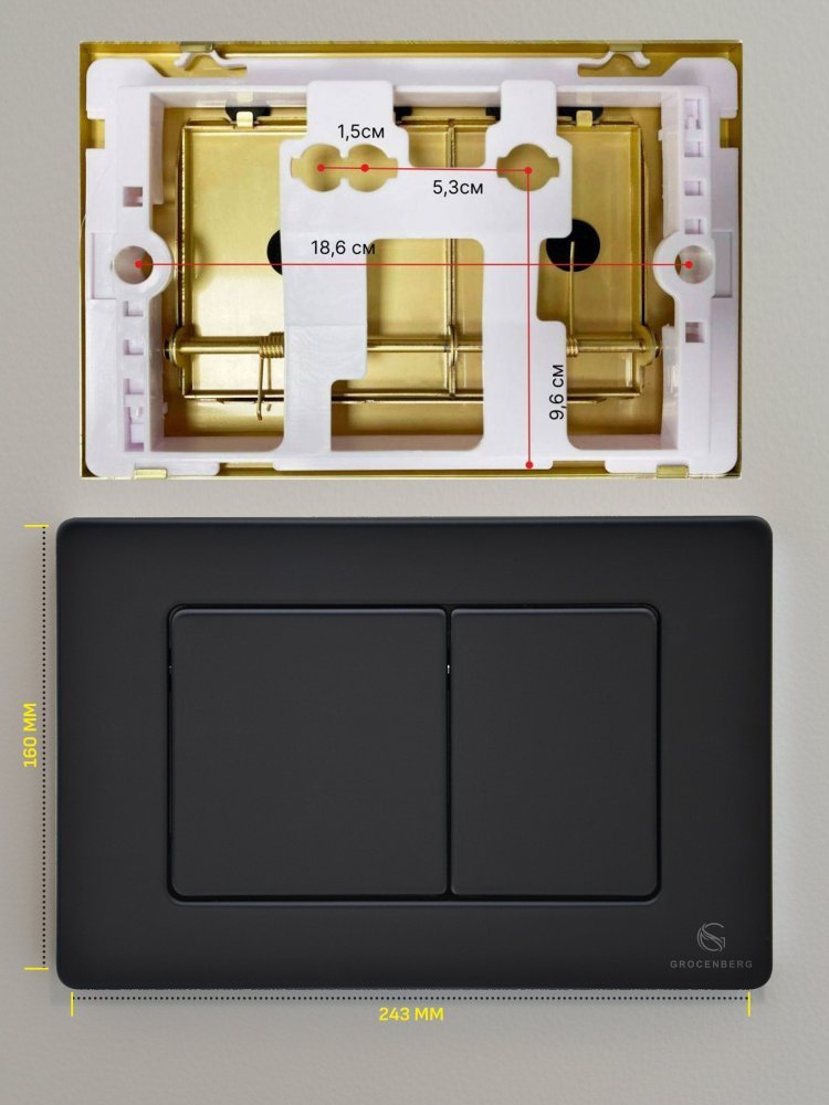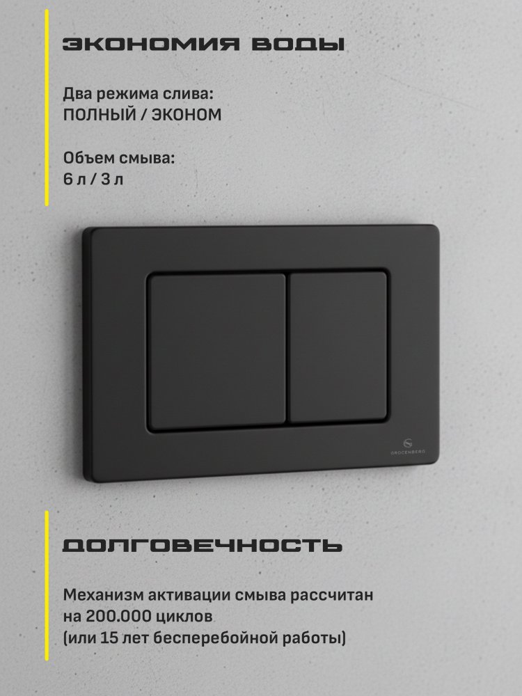 - GROCENBERG — это качество и надёжность, проверенные временем. Кнопка смыва изготовлена из прочного металла, который гарантирует долгий срок службы. С GROCENBERG вы получаете не только стильный, но и функциональный аксессуар для вашего туалета.