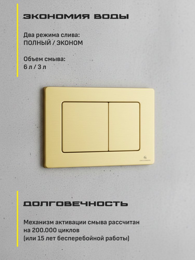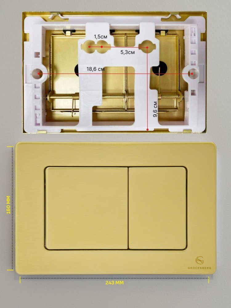 - Кнопка смыва для унитаза GROCENBERG KM3080MG — это не просто кнопка, это настоящее украшение вашей ванной комнаты! Матовое золото придаёт изысканность и элегантность, делая интерьер по-настоящему роскошным.