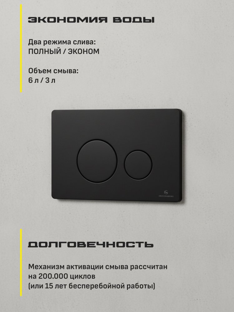 - Матовый чёрный цвет придаёт изысканность и элегантность, делая дизайн более современным и стильным. Кнопка GROCENBERG выполнена из прочного металла, что гарантирует её долговечность и надёжность.