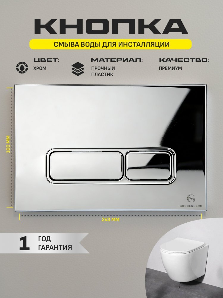 - Благодаря своей простоте и удобству в использовании, эта кнопка смыва сделает вашу повседневную жизнь ещё более комфортной. Наслаждайтесь каждым моментом с GROCENBERG KP3060CR — и пусть ваша ванная комната всегда будет наполнена уютом и комфортом!