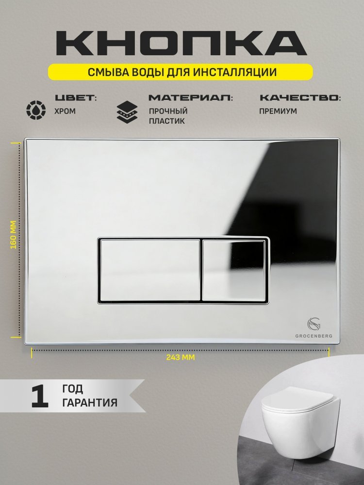 - GROCENBERG — это гарантия качества и стиля. Позвольте себе роскошь пользоваться надёжной и красивой кнопкой смыва, которая будет радовать вас каждый день!