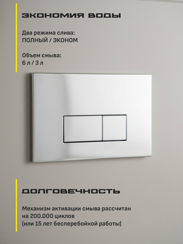 - Изготовленная из прочного пластика, кнопка GROCENBERG отличается высокой надёжностью и долговечностью. Она обеспечит чёткое и плавное срабатывание механизма слива, делая вашу жизнь более комфортной.